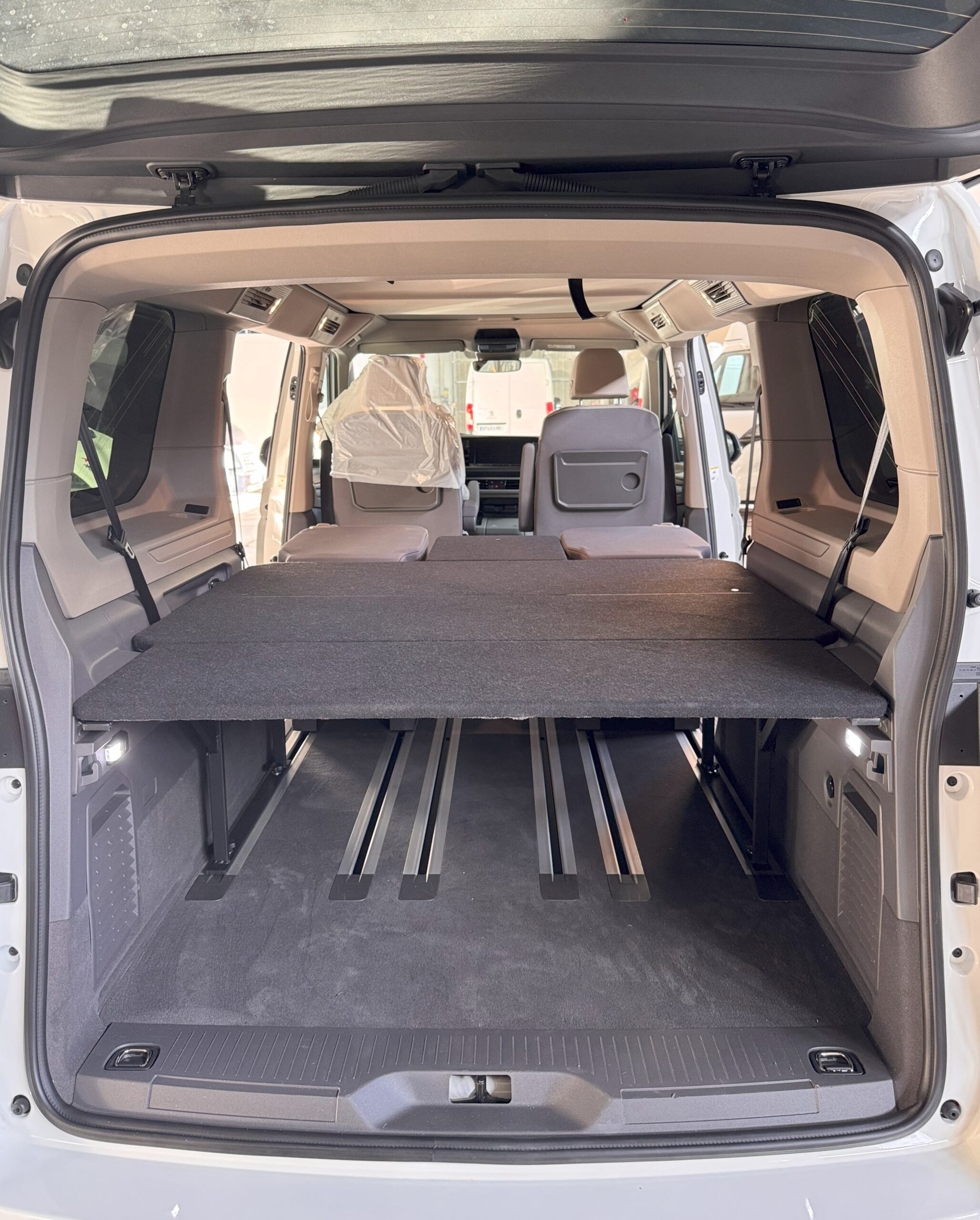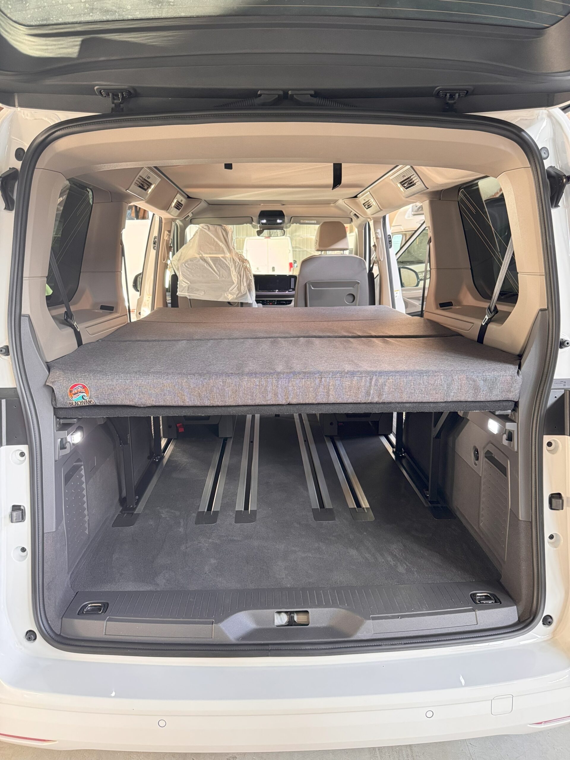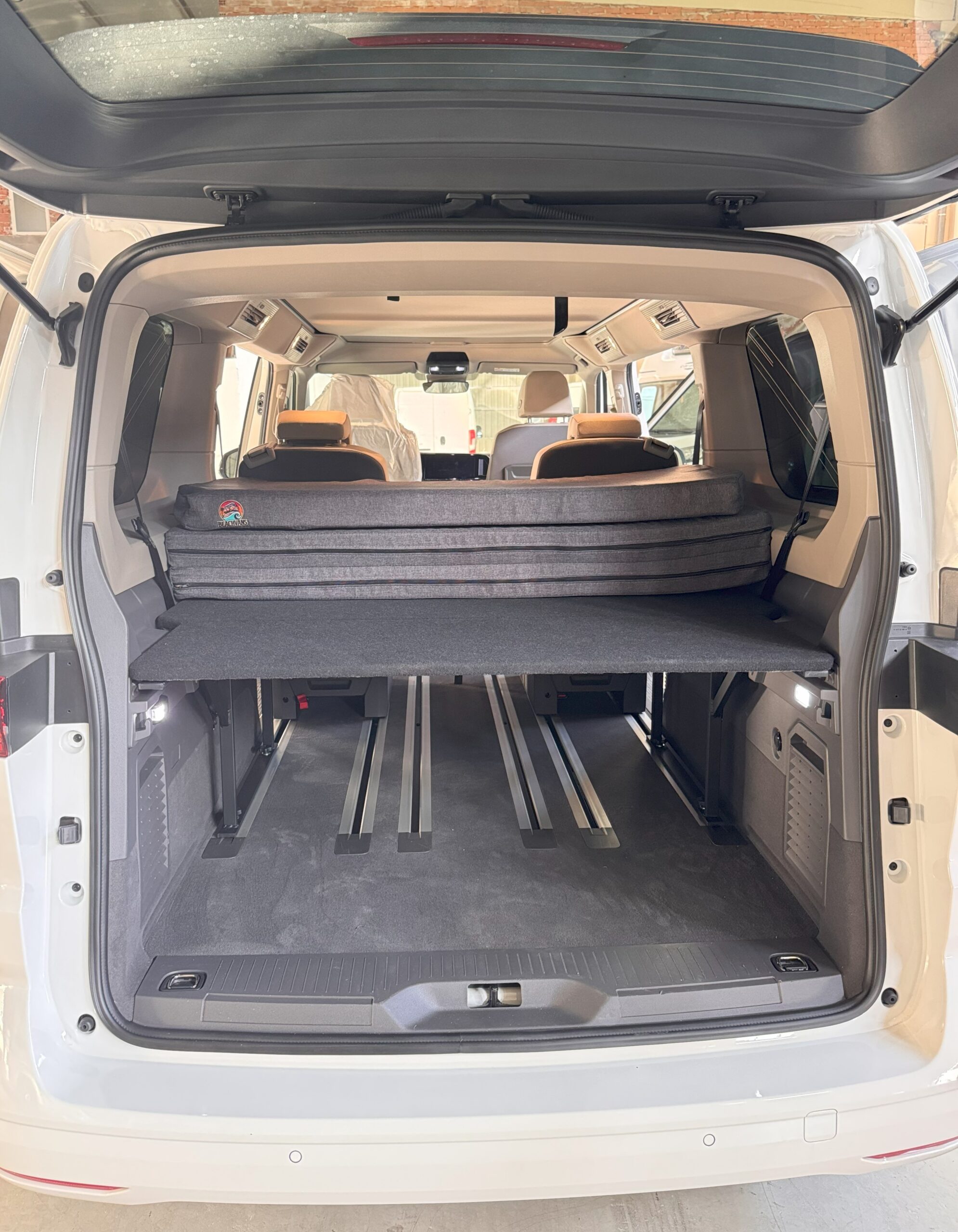 ¿Buscas la forma más inteligente de camperizar tu California Beach T7 de batalla larga? Nuestro kit cama multiflex, una alternativa al conocido kit buenas noches, está diseñado específicamente para aprovechar al máximo cada centímetro de tu furgoneta: una cama más grande que la mayoría de kits del mercado y, además, una solución inteligente para mejorar la organización y la capacidad de carga de tu furgoneta en tu día a día.