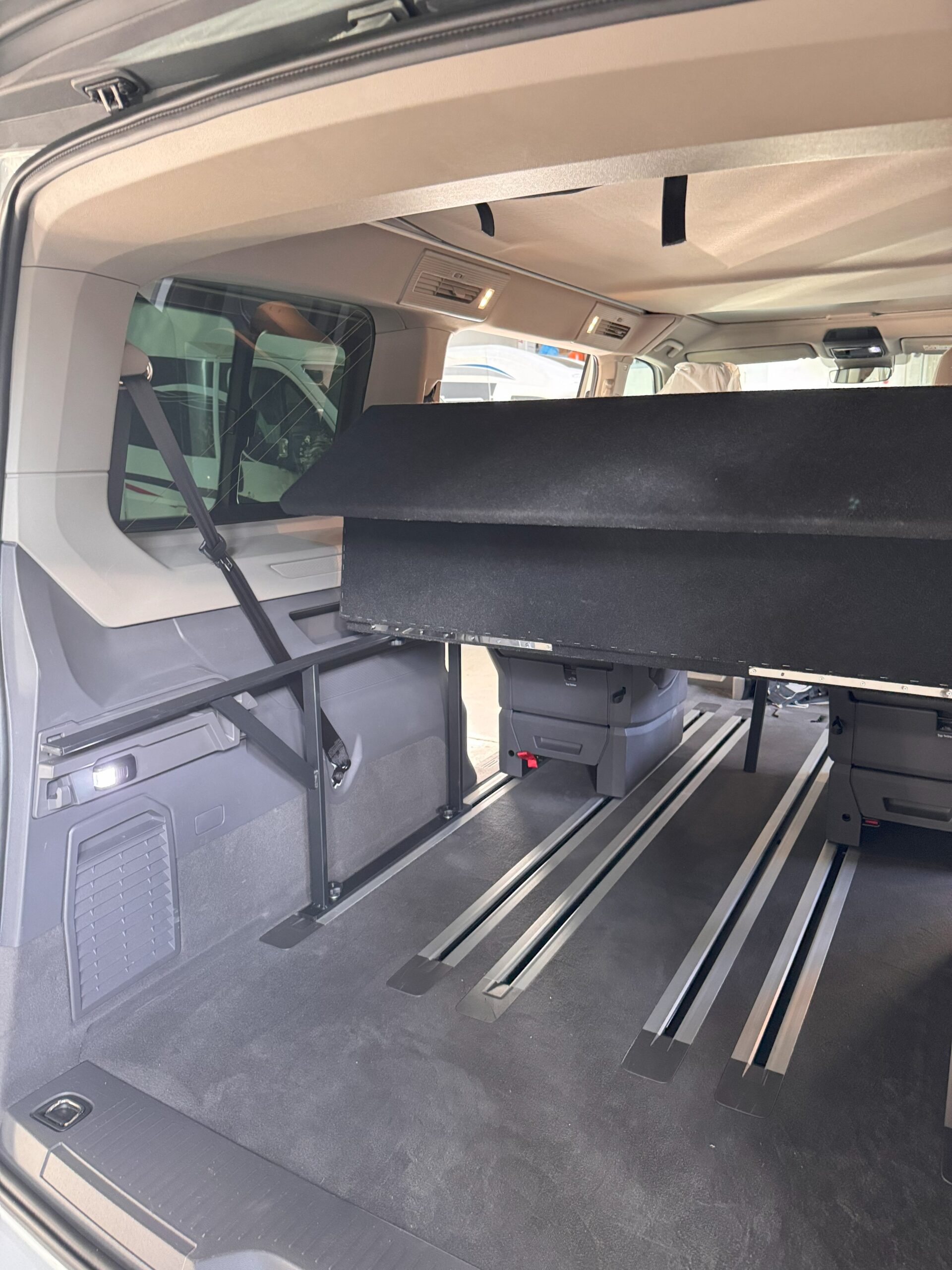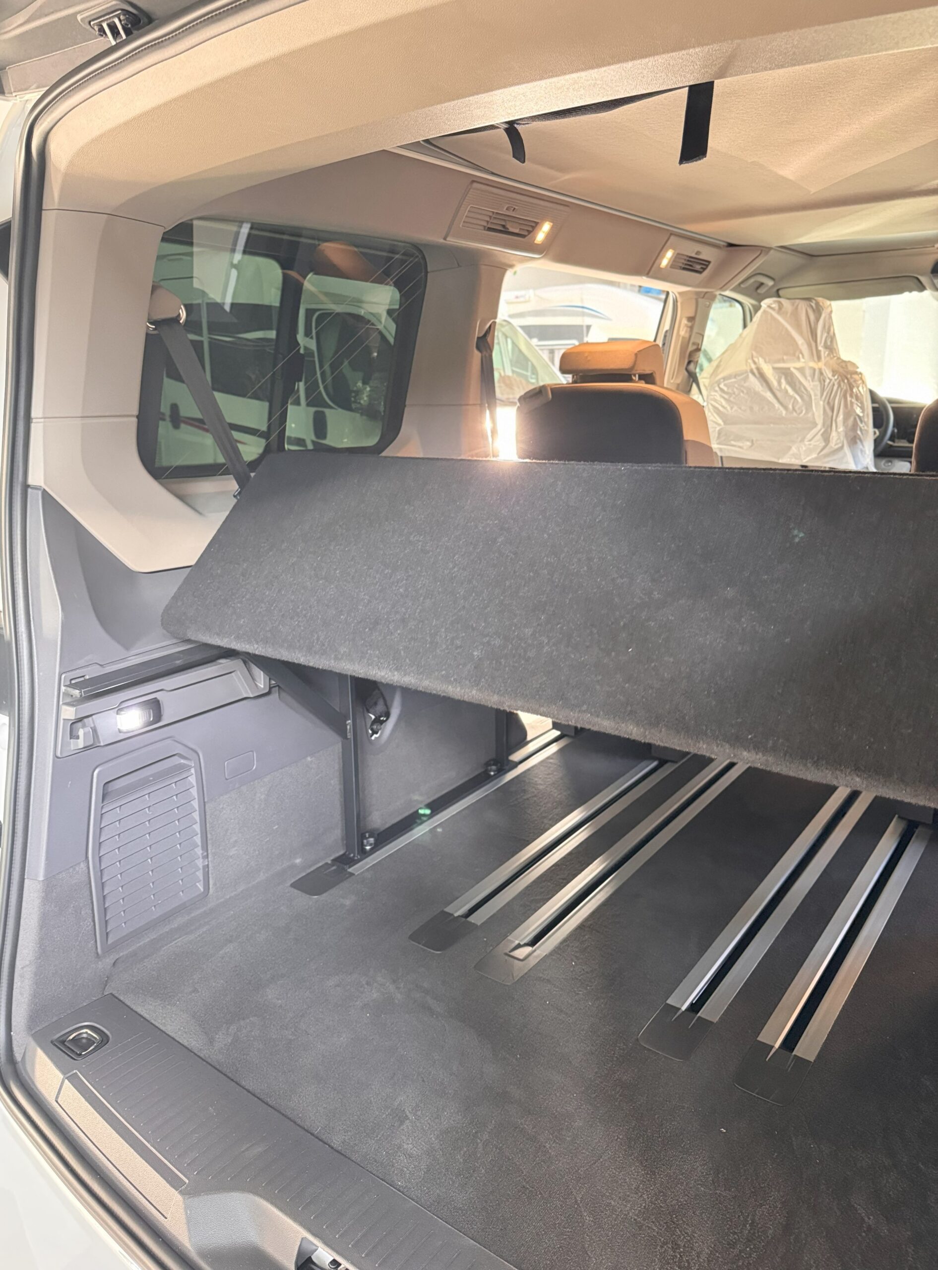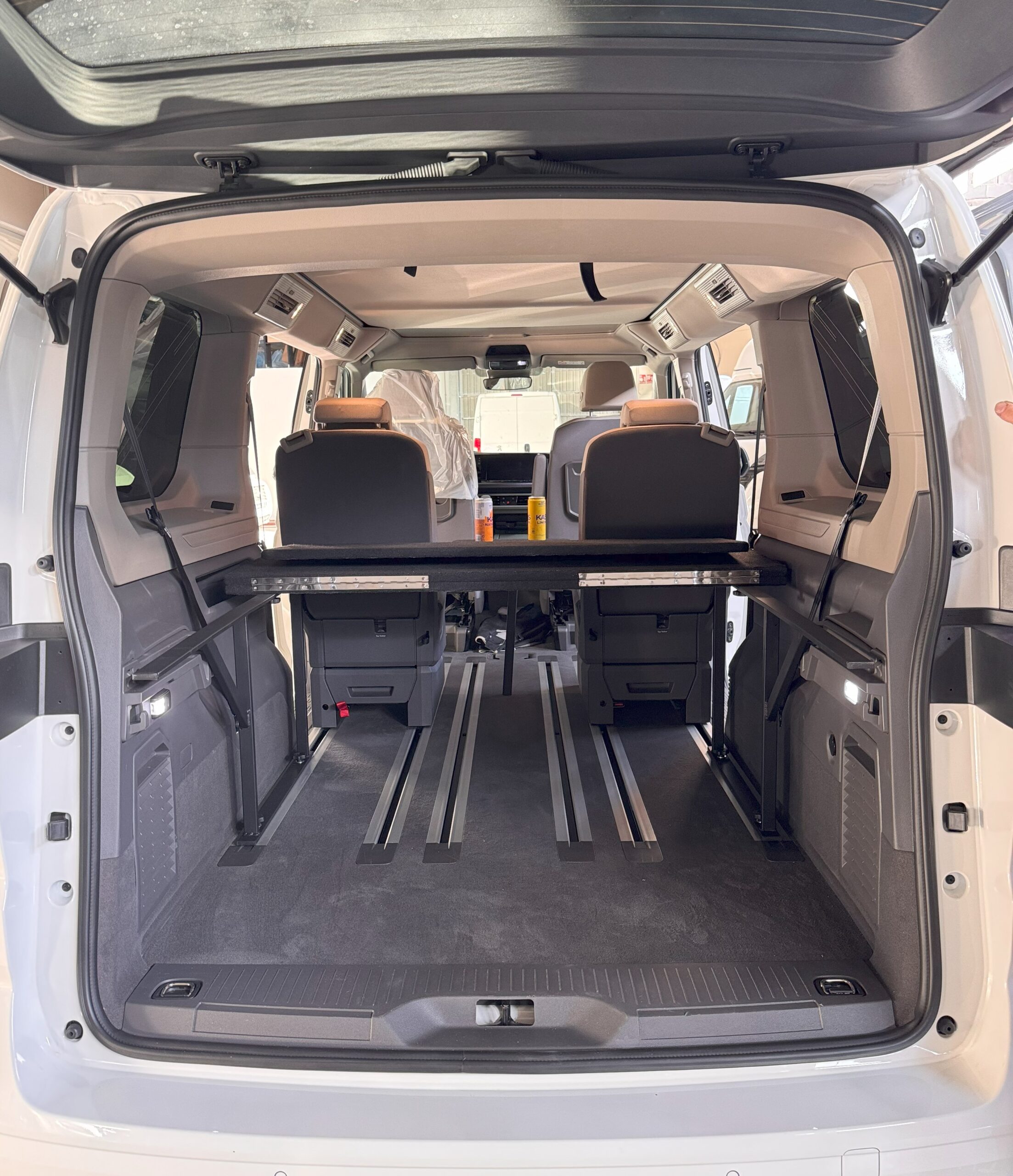 ¿Buscas la forma más inteligente de camperizar tu California Beach T7 de batalla larga? Nuestro kit cama multiflex, una alternativa al conocido kit buenas noches, está diseñado específicamente para aprovechar al máximo cada centímetro de tu furgoneta: una cama más grande que la mayoría de kits del mercado y, además, una solución inteligente para mejorar la organización y la capacidad de carga de tu furgoneta en tu día a día.