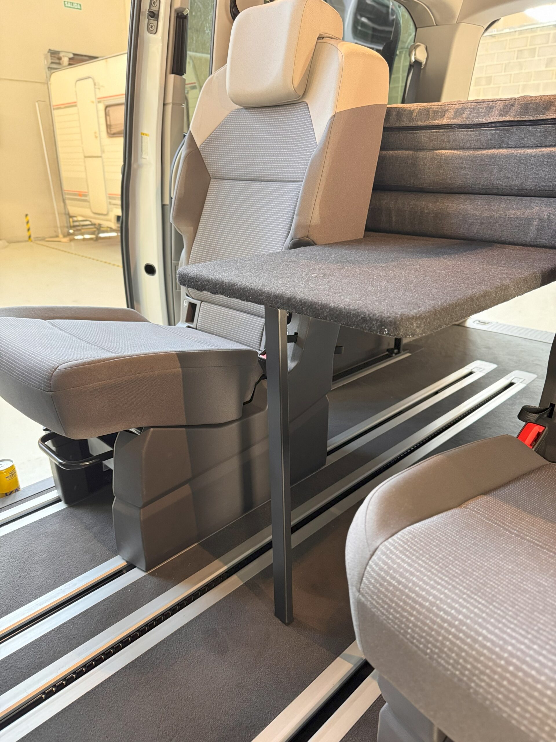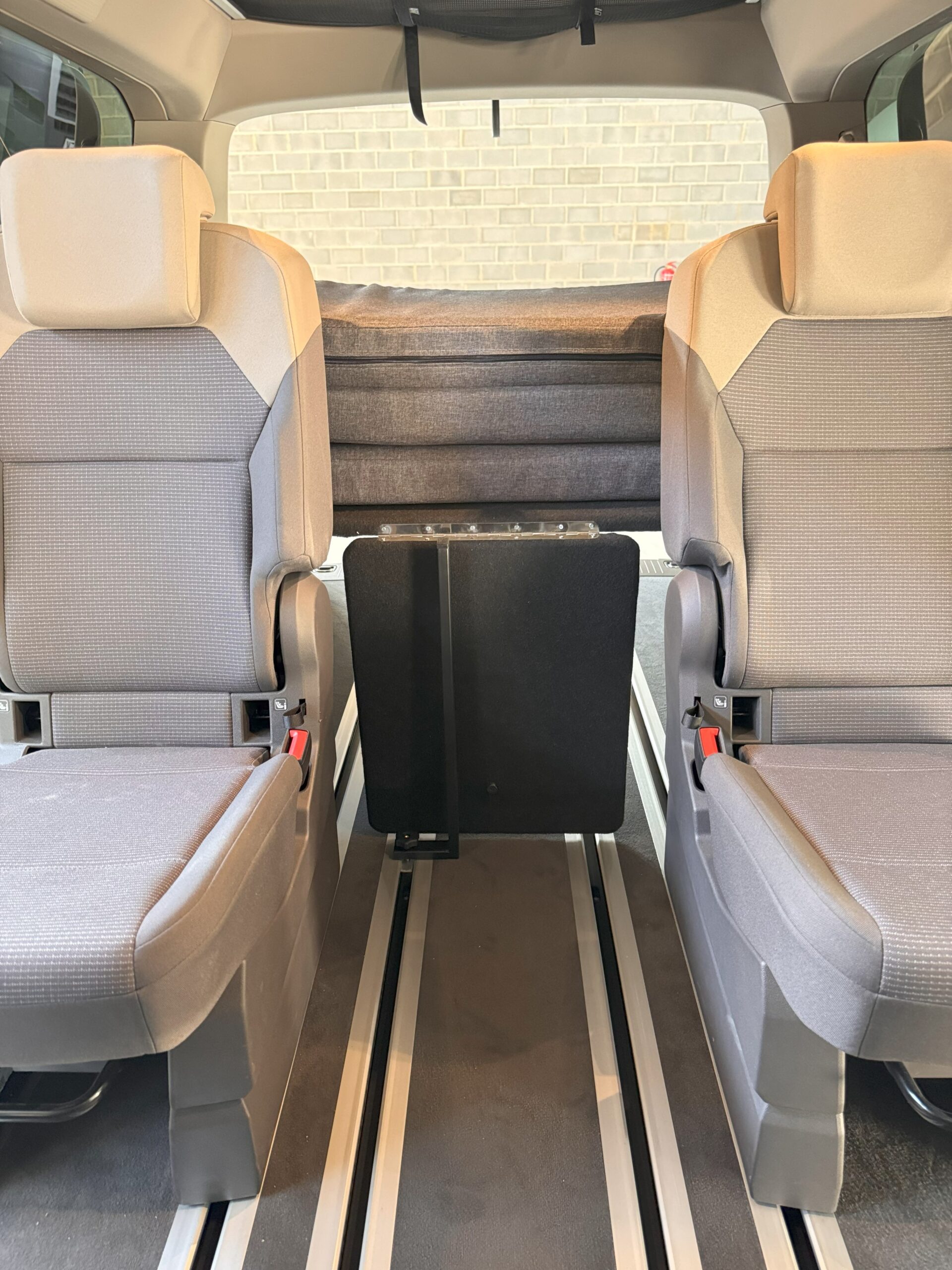 🚐 Importante: Este kit es compatible con la Volkswagen California Beach T7 de batalla larga con configuración de 3 asientos en la fila central. También tenemos disponible una versión para los que no tienen asiento central en la segunda fila. En ambos casos para usar el kit es necesario quitar la tercera fila de asientos.