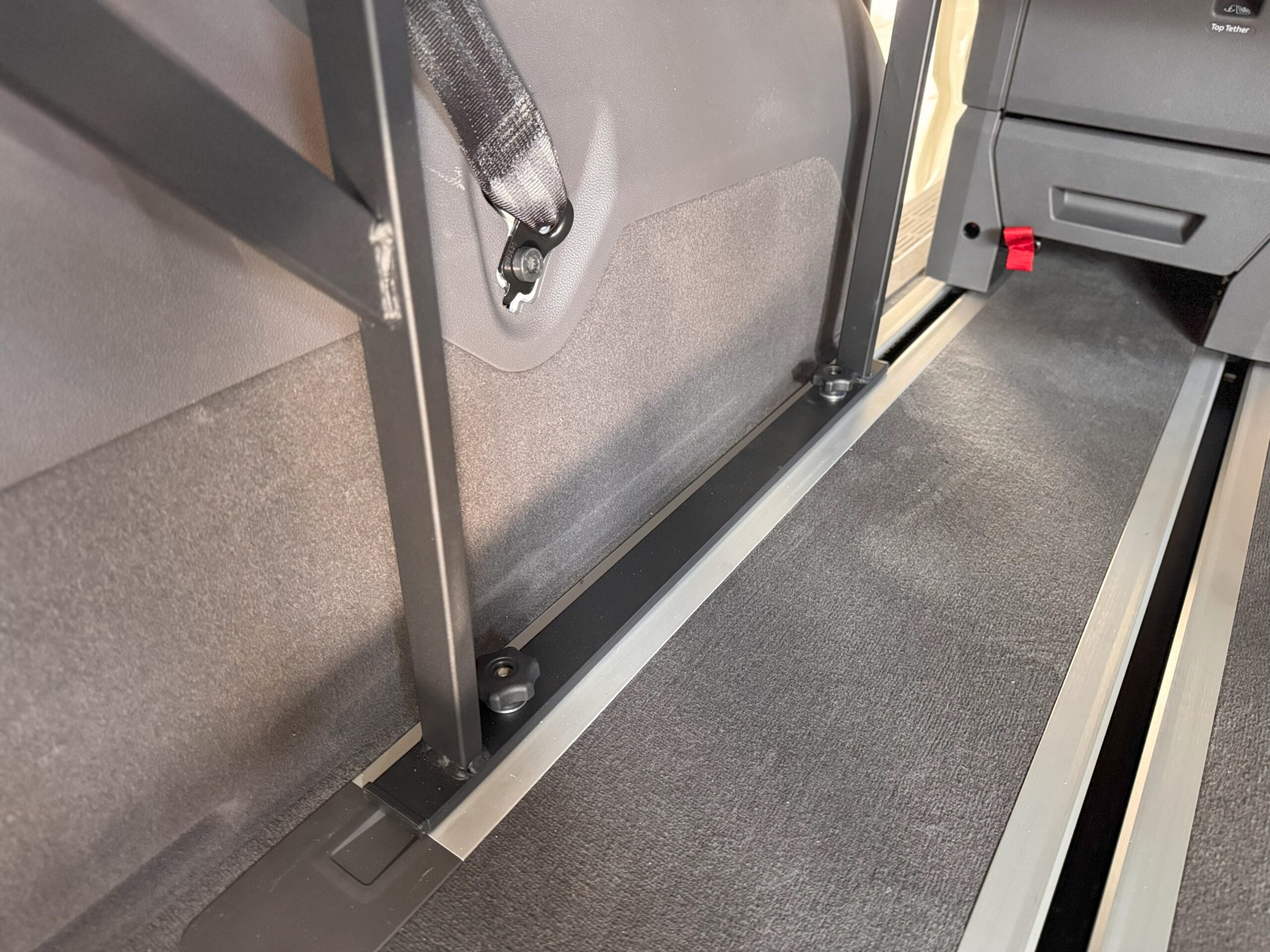El kit se fija directamente en los raíles originales del suelo, sin taladros ni tornillos. No necesitas herramientas: se monta y desmonta completamente a mano en solo unos minutos. Totalmente reversible.
