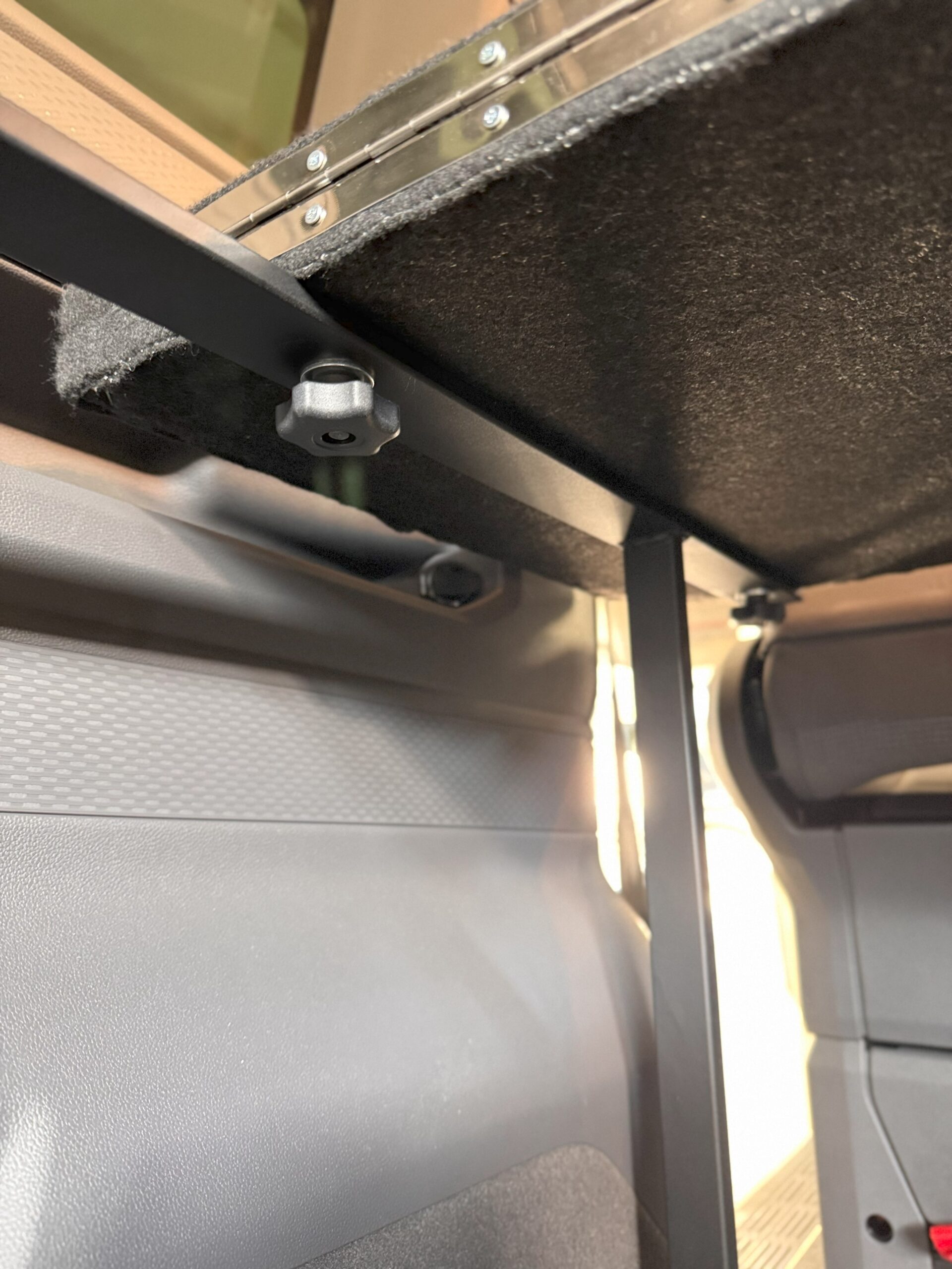 Gracias a su diseño elevado y compacto, este modelo deja más espacio libre bajo la estructura, permitiendo llevar equipaje, neveras, cajas o cualquier otro accesorio sin desmontar nada. Ideal si viajas con mucho material o quieres mantener la furgo útil a diario.